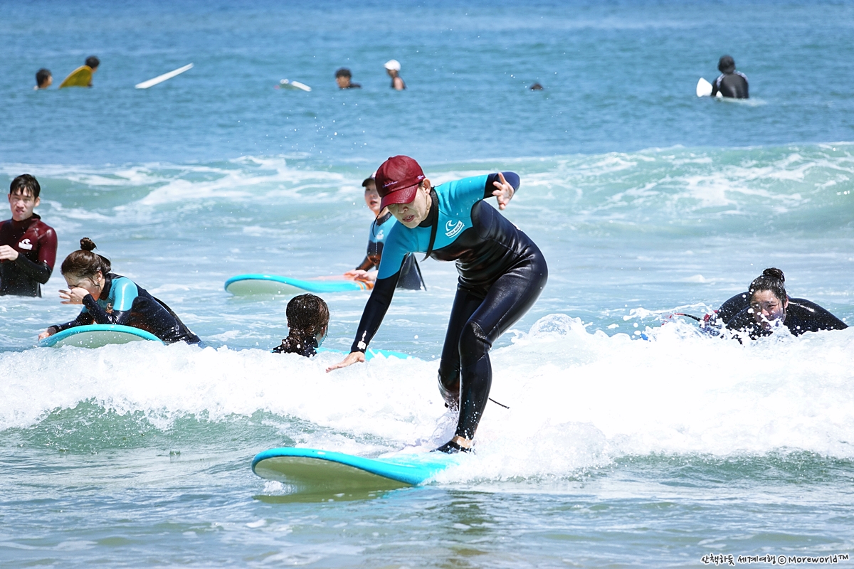 일단 동영상을 통해 서핑에 대한 기본적 설명을 듣고, 주의사항과 안전교육까지 완료하고 나면 해안으로 나와 실전 훈련을 받는다.