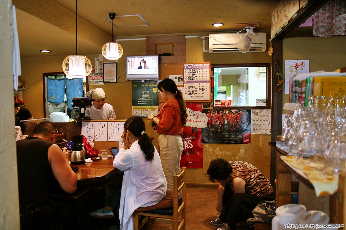 예약하지 않으면 제시간에 식사하기 힘들 거라고 숙소주인이 말했지만 혹시나 하고 갔는데 운 좋게도 기다리지 않고 자리 잡을 수 있었다. 작은 규모지만 꽤 유명한 식당이라 식재료가 소진되는 날도 많다고... 작은 다다미 방에 앉아 이리저리 둘러보던 중 드디어 음식이 나왔다.