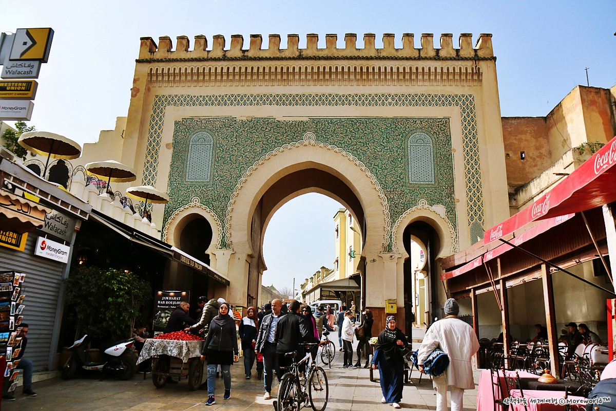 어쩌다 메디나에서 길을 잃고 헤매게 되면 방향을 찾는데 큰 지표가 되는 것이 '블루 게이트(Bob Boujloud)'다. 본래 이름은 밥 부즐렛이지만 여행자들에겐 블루 게이트로 통하고, 이제는 안내판에도 블루 게이트로 표기되기도 한다.